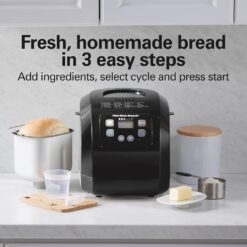 Hamilton Beach Bread Maker Machine, Digital, Programmable, 12 Settings + Gluten Free, Dishwasher Safe PFAS-Free Nonstick Pan + Kneading Paddle, 2 lb Capacity, Black (29982)