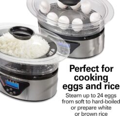 - PERFECT FOR COOKING EGGS AND RICE: This automatic food steamer lets you cook up to 24 eggs from soft to hard-boiled or prepare white or brown rice. The rice bowl is perfect for preparing up to 6.5 cups of cooked rice or small foods.