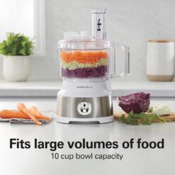 Hamilton Beach Food Processor & Vegetable Chopper for Slicing, Shredding, Mincing, and Puree, 10 Cups + Easy Clean Bowl Scraper, White and Stainless Steel (70733)