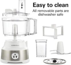 - SLICE, SHRED, CHOP, MIX AND PUREE WITH 2 VERSATILE ATTACHMENTS : The Hamilton Beach food processor gives you 5 processing functions and includes a stainless steel slicing/shredding disc and chopping/pureeing blade so you can tackle every job with ease.