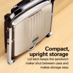 - Café-style floating lid evenly grills sandwiches of any thickness