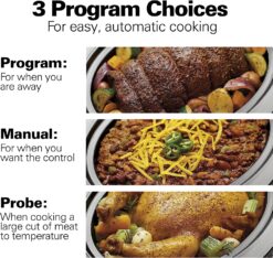 Smart technology allows you to cook a wide range of recipes to either a specific temperature when using the probe or to a desired cooking time. When your food is done cooking on either of these settings, the slow cooker will automatically switch to warm.