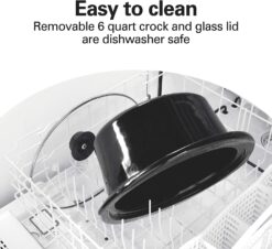 Removable stoneware crock and glass lid go in the dishwasher for easy cleanup.