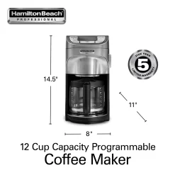 Hamilton Beach Professional Programmable Drip Coffee Maker, 12 Cup Capacity Ergonomic Carafe, 60oz Removable Reservoir, Brushed Metal (49500)