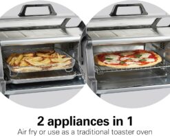 - SURE-CRISP AIR FRY FUNCTION EVENLY COOKS AND BROWNS FOODS FOR A CRISP FINISH: Sure-Crisp convection evenly cooks foods and browns foods with little or no oil, making this air fryer toaster oven ideal for fries, chicken wings, vegetables, and more.