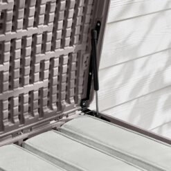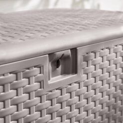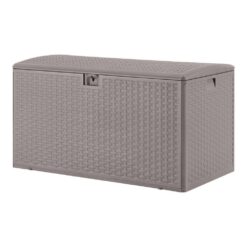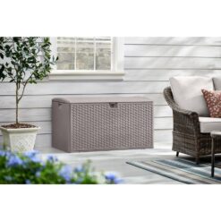 Keep summer fun items close by in this amazing deck box. It features a lovely driftwood gray hue, making this resin wicker deck box a stylish addition on a patio, deck or porch. Large interior cabinet is perfect for storing outdoor pillows, seat pads, swim gear and more.