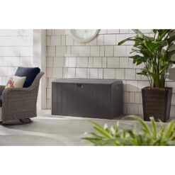 Hampton Bay HBDB130WLJ-GS 130 Gal. Brown Resin Wood Look Outdoor Storage Deck Box with Lockable Lid