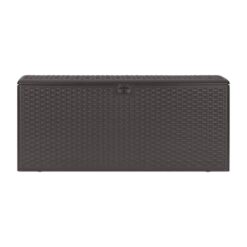 Keep summer fun items close by in this amazing deck box. It features a lovely java brown hue, making this resin wicker deck box a stylish addition on a patio, deck or porch. Large interior cabinet is perfect for storing outdoor pillows, seat pads, swim gear and more.