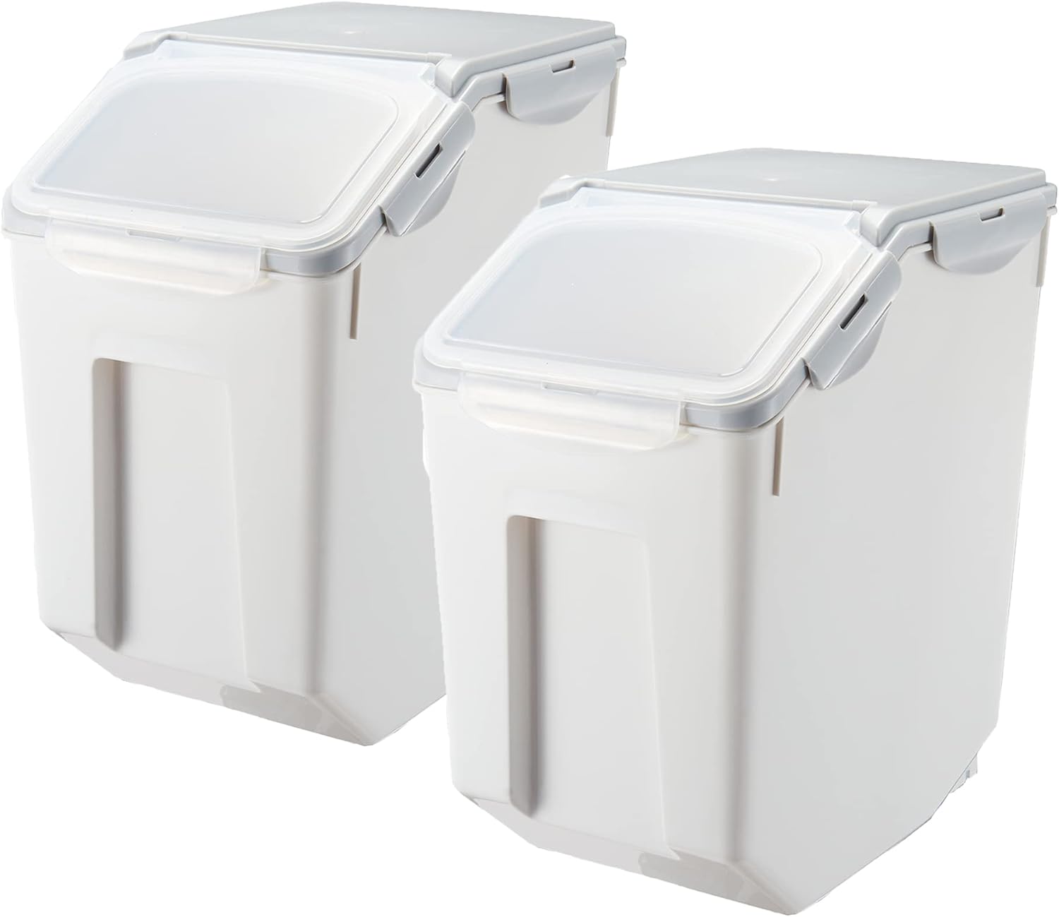 HANAMYA 15 Liter / 30 lbs Rice Storage Container with Measuring Cup, BPA free, For Rice | Grain | Pet Food | Flour, 2 count, White & Gray