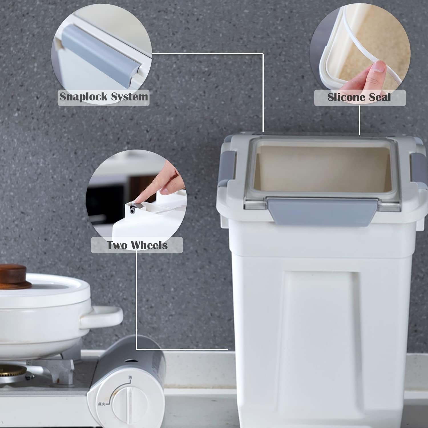 - Airtight Silicone Sealed Cover with one Flip Lid and 6 Locks: Keep rice, flour, corn, beans, or pet dry food fresh and healthy. It’s moisture-proof, dust-proof, not leak-proof.