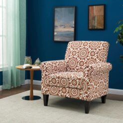 Handy Living Jean Orange and Cream Medallion Arm Chair, Fabric