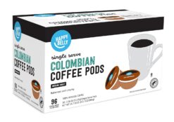 - Contents: One box of 96 count Happy Belly Colombian Coffee Pods (Medium Roast)