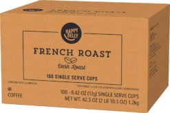 Happy Belly Dark Roast Coffee Pods, French Roast, Compatible with Keurig 2.0 K-Cup Brewers, 100 Count