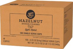 Happy Belly Light Roast Coffee Pods, Hazelnut Flavored, Compatible with Keurig 2.0 K-Cup Brewers, 100 Count