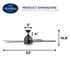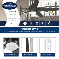 Harbor Breeze 42483 Flanagan II 52-in Matte Black Color-changing Indoor Ceiling Fan with Light Remote, Matte Black (5-Blade)