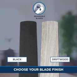 - Matte black finish ceiling fan from the Flanagan collection features 5 reversible black/driftwood blades so you can choose the right look for your home