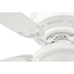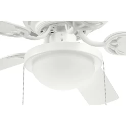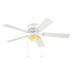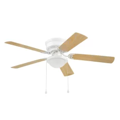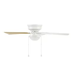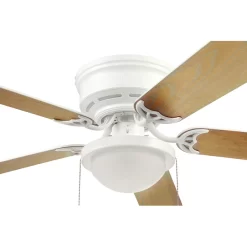 - White finish complements the 5 reversible white or washed oak ceiling fan blades