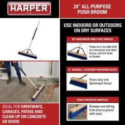 HARPER 24 in. All-Purpose Hardwood/Steel Handle Push Broom for Dust and Gravel