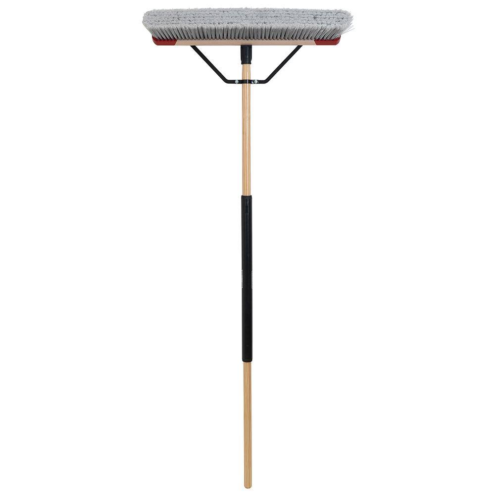 - 24 in. push broom features 24 in. hardwood brush head and 60 in. durable multi-material handle with oversized comfort grip