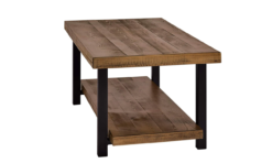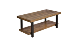Second only to the sofa, coffee tables are living room icons. Theyre ubiquitous in all interior designs and come in a seemingly endless amount of styles. Take this coffee table for example: with a rustic design of natural woods, and dark accents, this piece is perfect for traditional aesthetics. Crafted from solid birch wood, in a natural medium brown finish, this rectangular piece features a bottom shelf for more display space of books, magazines, and decorative accents.
