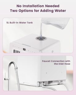 - Hassle-Free Installation – The built-in 5 L water tank offers additional convenience and eliminates the need for plumbing, allowing you to place this HAVA Mini Dishwasher anywhere in your dorm, apartment, kitchen or RV. Enjoy the portability of this appliance in small spaces or temporary setups with no hassle of installation.