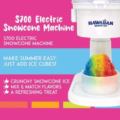 - Make it snow right in your own kitchen with the kid-friendly S700 Electric Shaved Ice Machine. Make a margarita, slushie, granita, iced coffee, or any other frozen snowball treat you can think of. Your own icy treat station at home. The Hawaiian Shaved Ice countertop snocone maker is simple to use and clean. Portable, easy to store when not in use.