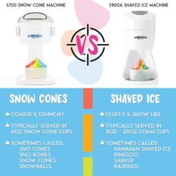 Hawaiian Shaved Ice Kid-Friendly S700 Classic Snow Cone and Shaved Ice Machine with Instruction Manual, Tip Card, and 1-year Manufacturer’s Warranty, 120V, White