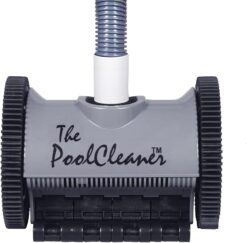 Hayward Poolvergnuegen 2-Wheel Suction PoolCleaner uses your existing pool pump and filter for power—simply plug it into the designated suction port or the skimmer for quick an easy setup. Featuring patented self-adjusting turbine vanes, PoolCleaner delivers maximum power at any flow and allows passage of larger, more stubborn debris. Patented tire treads enhance climbing ability and obstacle maneuverability while patented adjustable roller skirts allow the cleaner to maintain optimal suction on uneven surfaces and when encountering obstacles. Multiple pre-programmed internal steering sequences ensure complete pool coverage—PoolCleaner travels 8 – 10 ft. before turning, and turns can range from 90 to 450 degrees. For average-sized pools up to 16 x 32 ft., the 2-wheel Poolvergnuegen PoolCleaner is a powerful, efficient choice