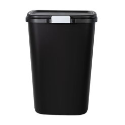 - 13.4-gallon black trash can has an Odor Control Touch Lid to reduce odors