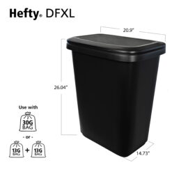 The Hefty Dual Function XL Trash Can is the large and versatile solution you have been looking for. Use it with a 30-gallon bag for maximum capacity and say goodbye to frequent bag changes. Alternatively, easily click in the provided divider to create two 13-gallon sections, perfect for sorting trash and recyclables. Switch between the two styles by simply popping the divider in or out as your needs change. It works in the kitchen or in the garage and it is perfect for a party.