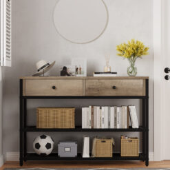 Hellone Console Table with Drawers, Industrial Sofa Table Entryway Table Narrow Long with Storage Shelves for Entryway, Front Hall, Hallway, Sofa, Couch, Living Room, Kitchen