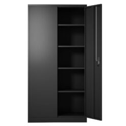 Hephastu HD-DH001 72 in. Tall Black Metal Storage Cabinet with 2-Doors and 4-Shelves, Steel Storage Freestanding Cabinet in Black
