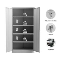 72 in. Tall steel storage cabinet. It has 4 Adjustable Shelves and 2 lockable Doors. Increased privacy and deployment of your space is possible. Suitable for Garage Home Office Kitchen.
