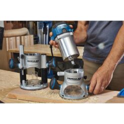 The HERCULES® Variable Speed Fixed Base Router with Plunge Base Kit has a powerful 12 amp soft start motor for precise control and a quality finish in all materials including tough hardwood. The plunge base has a 2 in. plunge capacity. This kit gives you the stability of a fixed base router and the versatility of a plunge base.