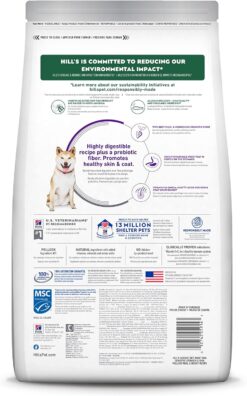 Hill’s Science Diet Sensitive Stomach & Skin Adult Dog Food is specially formulated for optimal digestive health. This dog food for sensitive stomachs uses prebiotic fiber to fuel gut bacteria and support a balanced microbiome. In addition, this dry dog food is made with natural ingredients with added vitamins, minerals and amino acids. This food is an excellent source of vitamin E and Omega-6 fatty acids to nourish the dog’s skin, and help maintain a healthy, shiny coat. This nutrition is formulated with decades of cutting-edge research to be a great-tasting meal for adult dogs.