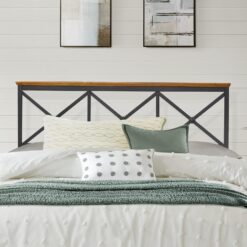 Metal beds are all the rage and the innovative Hillsdale Furniture Ashford Headboard proves why. The black metal frame has wood top accents on the headboard adding mixed media appeal. It features a modern-inspired scheme with a triple X-shaped design throughout.