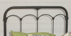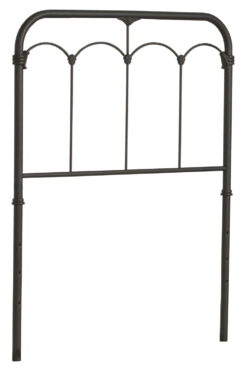 Simple and romantic. The Hillsdale Furniture Jocelyn Twin Headboard boasts a traditional silhouette with a playful Black Speckle metal finish. Its delicate spindles culminate in gentle arches with clamshell castings between each arch that correspond splendidly with the whimsical rail connectors. Includes headboard only; Frame, Box spring and mattress required; not included. Assembly required.