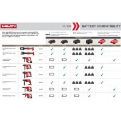 - Hilti recommends nuron battery B22-85 (2251352) or B22-170 (2251360) to be used with this tool, see compatibility chart for details