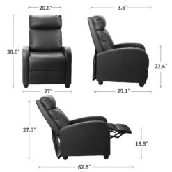 Homall Recliner Chair Padded Seat Pu Leather for Living Room Single Sofa Recliner. This product is one of the first choice of single recline chair on the market at present. As a professional furniture brand Homall, we focus on the building of the home, this product is our professional design team after long-term design and research and development to create, the surface is PU black leather, the appearance of simple atmosphere, put in your room, you can elevate your room to a higher level. Ergonomically designed, it is very comfortable to sit on.  Material: High quality pu leather, comfortable skin friendly and easily cleaned, high density thicker sponge, high resilience and high permeability.  Adjustable Recliner: This recliner can be used as three kinds of shape from 90 to 180 degree, suit for gaming, working, watching movies and napping. Upgraded Footrest: Highly durable steel frame with thicker foam padding, better to enjoy your favorite tv shows or rest. Foot protection: This single recliner is supported by four sturdy feet with non marking pads which effectively protect the sofa and hard floor.