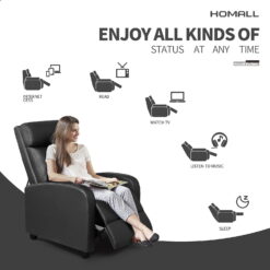 Homall Recliner Chair Padded Seat Pu Leather for Living Room Single Sofa Recliner Modern Recliner Seat Club Chair Home Theater Seating, Black