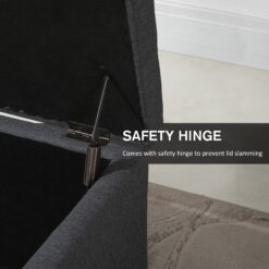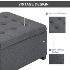 Complete your home decor set with this beautiful storage ottoman from HomCom. Breathable linen-touch fabric and button-tufted detail add vintage glamor to your living room. Featuring ample storage space, this storage Ottoman is a practical yet classic choice for added seating in the entryway, under the window, or in the living room. Use this ottoman with storage to store movies, blankets, shoes, and more. The secure hinge on the lip prevents it from slamming onto your fingers. Get a matching piece of your living room set that can also provide extra storage in your living room with this ottoman with storage from HomCom.