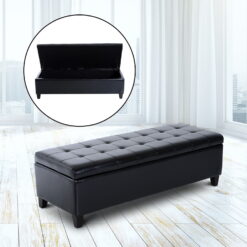 Finding the right style is necessary to help bring a room together and this chic, stylish HomCom faux leather storage bench is the perfect addition to any living room, bedroom, or entryway. It features a beautiful elegant exterior and tufted top, along with sturdy wooden legs and a roomy interior that is perfect for storing extra pillows and blankets, shoes, or other clothing and accessories. The thickly padded, foam cushion top provides you with complete comfort and support when used as additional seating and the whole bench is supported by covered hardwood feet that can support up to 265 lbs. Whether you are using this bench as extra seating, a storage unit, or just to put your feet up, this HomCom ottoman will enhance any space it is placed in.
