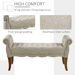 Are you looking for an elegant and practical sitting bench HomCom has got you covered with this elegant tufted hallway bench. This bedroom bench can serve as a sitting stool, bed end bench, or entryway bench, fits the living room, dining room, bedroom, or hallway. Covered in breathable linen fabric with thick sponge padding cushion for the ultimate sitting experience. Use this upholstered bench to enhance the décor of any room of your home.
