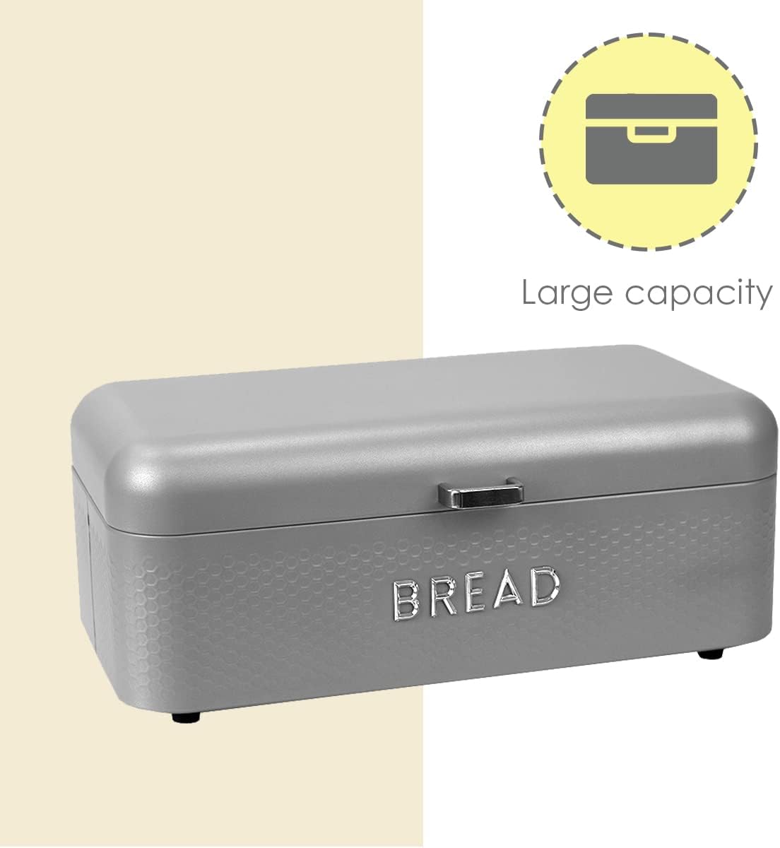 - HOLDS BREAD ROLLS AND OTHER BAKED GOODS: This large bread box can comfortably fit two to three rolls of bread inside, or it can provide storage for other baked goods such as croissants, bagels, cookies, and more