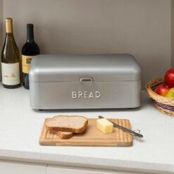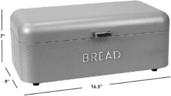Home Basics Soho Bread Box For Kitchen Countertop, Metal, (Grey), Vented With Hinge Top | Large Bread Box | Keeps Loaves, Bagels, Croissants Fresh