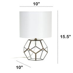 A stunning piece of decor suited to properly light your space is the key to designing this gorgeous octagon shaped table lamp. A transparent glass base with brass metal accents is paired with a white drum shade to inspire a vintage feel with modern class. The glamour and elegant style of this lamp powers on with a push pin on/off switch making it convenient to place bedside, atop your living room accent table, your foyer entrance, or office space!