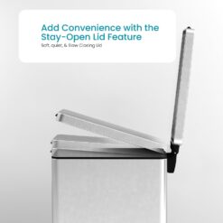 - Maximize Your Kitchen Space – Freely place your trash bin in narrow spots around the kitchen with the slim profile design.