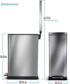 Kitchen trash cans don’t need to be a burden or an inconvenience at home. Rather, we are looking to make waste management easier for you. With this 12 gallon / 45 liter stainless steel trash can, we are looking to achieve just that. With the slim body style you are able to fit into many different locations around the room. The bag tucks bands make tying bags down and swapping them out much easier than before. In fact, no need to tie bags down. Instead, you simply tuck the excess bag slack underneath the rubber band outside the liner. Additionally, the slow close lid allows for silent operation that’s easy on the ears. Overall, this trash bin is a welcoming introduction to the Home Zone Living family.