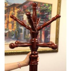 A classic design in a rich oak finish, this coat rack is sure to dress up any home. It is perfect to add a touch of style to your entranceway, or even if you’re simply looking for a functional item that will hold your coats. Features like spinning tops, double and triple tiered hooks enhance the functionality of any space and keep everyday items like coats, hats and jackets neatly in place.