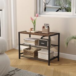 HOMEFORT 3-Tier Shoe Rack, Shoe Storage Shelf, Industrial Shoe Tower, Narrow Shoe Organizer for Closet Entryway, Small Shoe Rack Table with Durable Metal Shelves, Rustic Brown